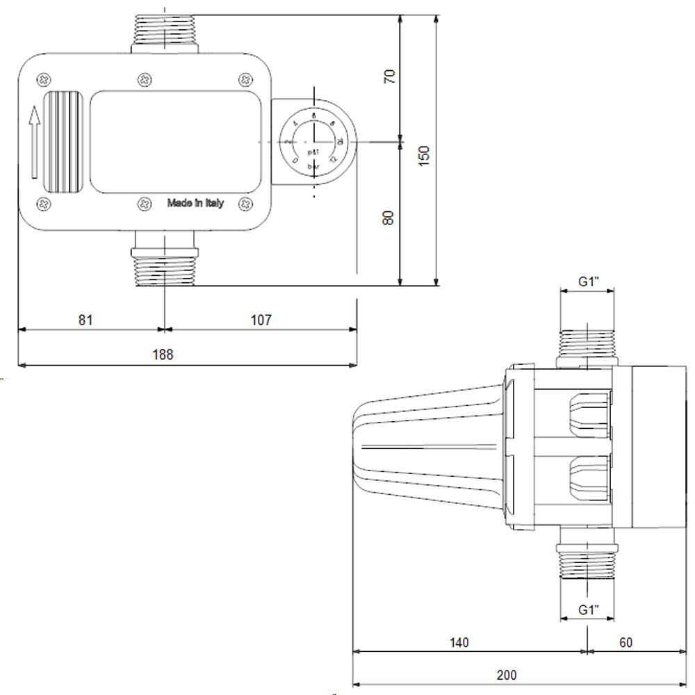 | PM2 - 1.5-5 BAR / 1" M Connections / 1 x 230 Volt 50/60Hz |